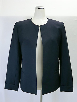 中古学販ブレザー 制服・シューズ類 2025.11.07 ■中古学販ブレザー 【商品番号】PCE593 【価格】9,000円(税込:9,900円) 【学校名】不明 【メーカー】OLIVE des OLIVE 【サイズ】160 肩幅39cm 胸囲96cm 袖丈57cm 【素材】ポリエステル50% 毛50% 紺無地のボレロタイプの襟無ジャケット。 適度な使用感・シワがあります。 未クリーニングです。