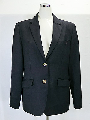 左胸に刺繍の入った濃紺色のシングルブレザー。
