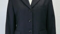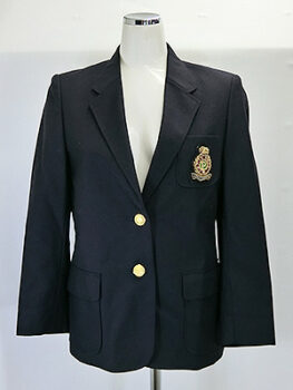左胸にエンブレムのある濃紺のシングルブレザー。
