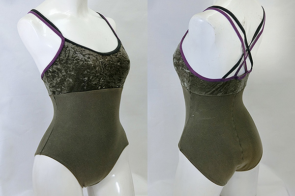 中古レオタード スポーツウェア類 2025.11.21 ■中古レオタード 【商品番号】CBE530 【価格】3,800円(税込:4,180円) 【メーカー】チャコット 【サイズ】S 【素材】不明 肩ヒモタイプのレオタード 黒と紫のヒモに深緑のベロア生地を使用。 適度な使用感があります。