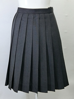 中古学販スカート(夏用) 制服・シューズ類 2026.01.30 ■中古学販スカート(夏用) 【商品番号】CAG781 【価格】7,800円(税込:8,580円) 【学校名】不明 【メーカー】スクールタイガー 【サイズ】ウエスト66-70cm 丈54cm 【素材】毛50% ポリエステル50% 濃灰地に黒青色が入った縦ストライプ柄スカート。 状態は良いがシワがあります。未クリーニング。