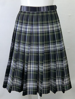 中古学販スカート(冬用) 制服・シューズ類 2026.01.30 ■中古学販スカート(冬用) 【商品番号】CAG782 【価格】7,800円(税込:8,580円) 【学校名】不明 【メーカー】カンコー 【サイズ】ウエスト60-66cm 丈56cm 【素材】毛30% ポリエステル70% 濃紺地に緑白青色が入ったチェック柄スカート。 裾に校章の刺繍が入っています。 状態は良いがシワがあります。未クリーニング。
