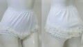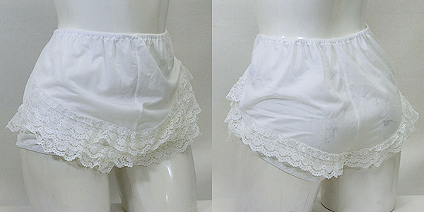 中古アンダースコート スポーツウェア類 2026.04.03 ■中古アンダースコート 【商品番号】CBG467 【価格】5,000円(税込:5,500円) 【メーカー】不明 【サイズ】LL位 【素材】キュプラ ポリエステル 前3本、後1本のフリルが付いた白色のテニススコート。 状態は良いです。